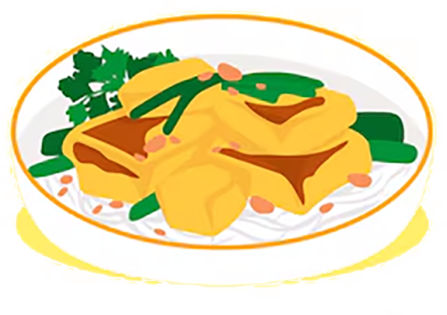 Spicy tomyum soup served with rice vermicelli or yellow noodles.